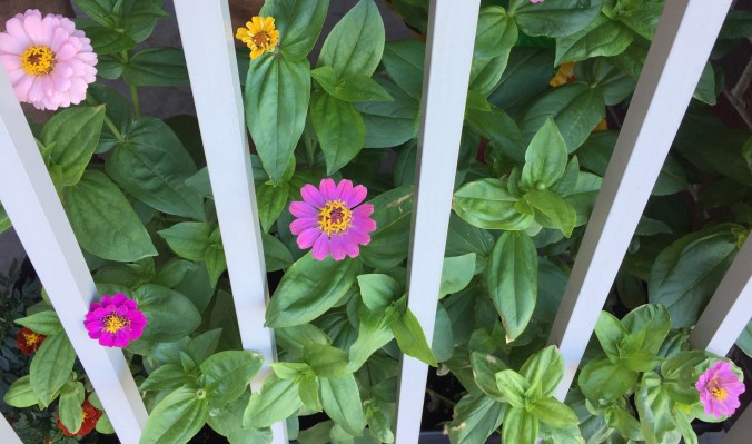 Meanwhile, I’ve fixed up my studio to my tastes. My spouse bought me window boxes and soil for my balcony and I successfully planted my first zinnia garden. Like with my marriage experiment I was unsure if these tiny seeds – hidden in the dark soil – would turn into a garden, but by July I had an explosion of greenery and color.